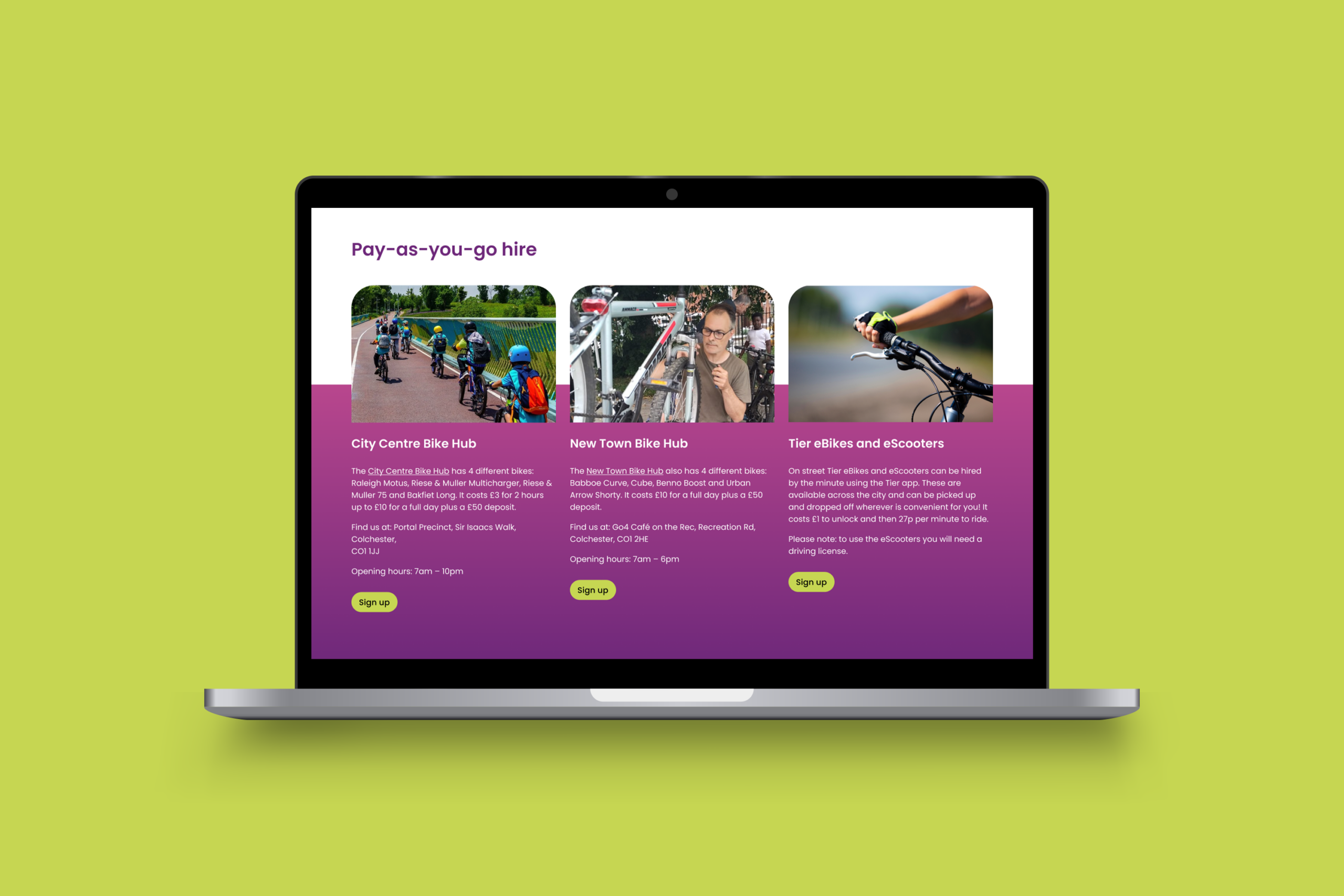 Take a look at the features we introduced to ensure the site met the cycling needs of the people of Colchester.