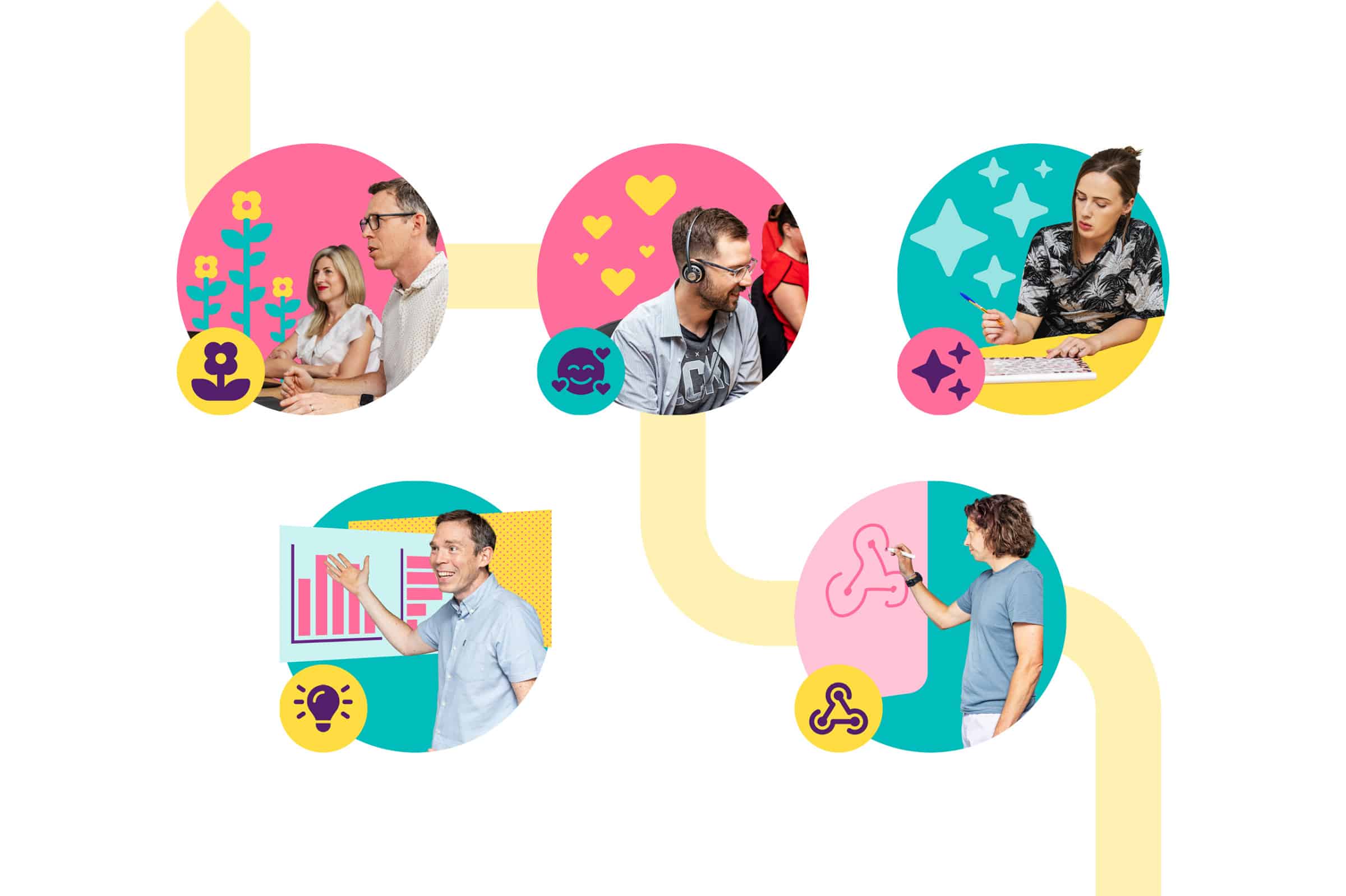 Our first impression of the close-knit team helped inspire the brand journey. Following our mini brand workshop, we explored conceptual pathways which aimed to create a sense of belonging and connection.