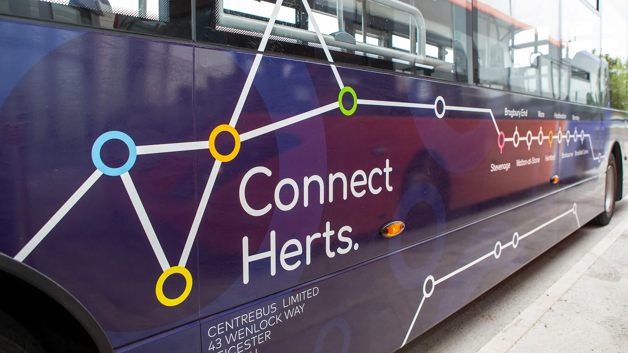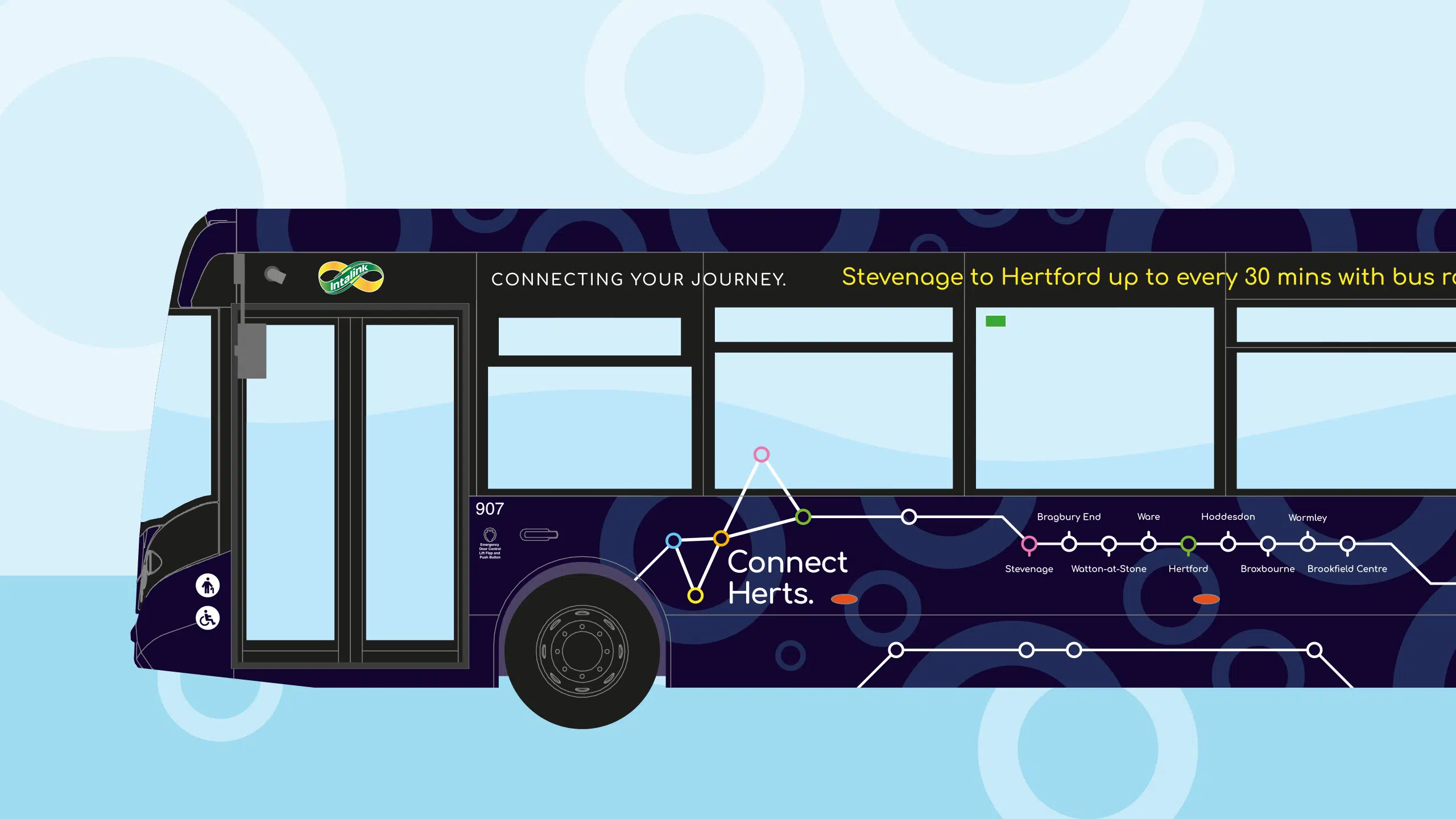 Creating a visual identity for a new era of public transport in Hertfordshire and marking the launch of their ambitious Bus Service Improvement Plan.