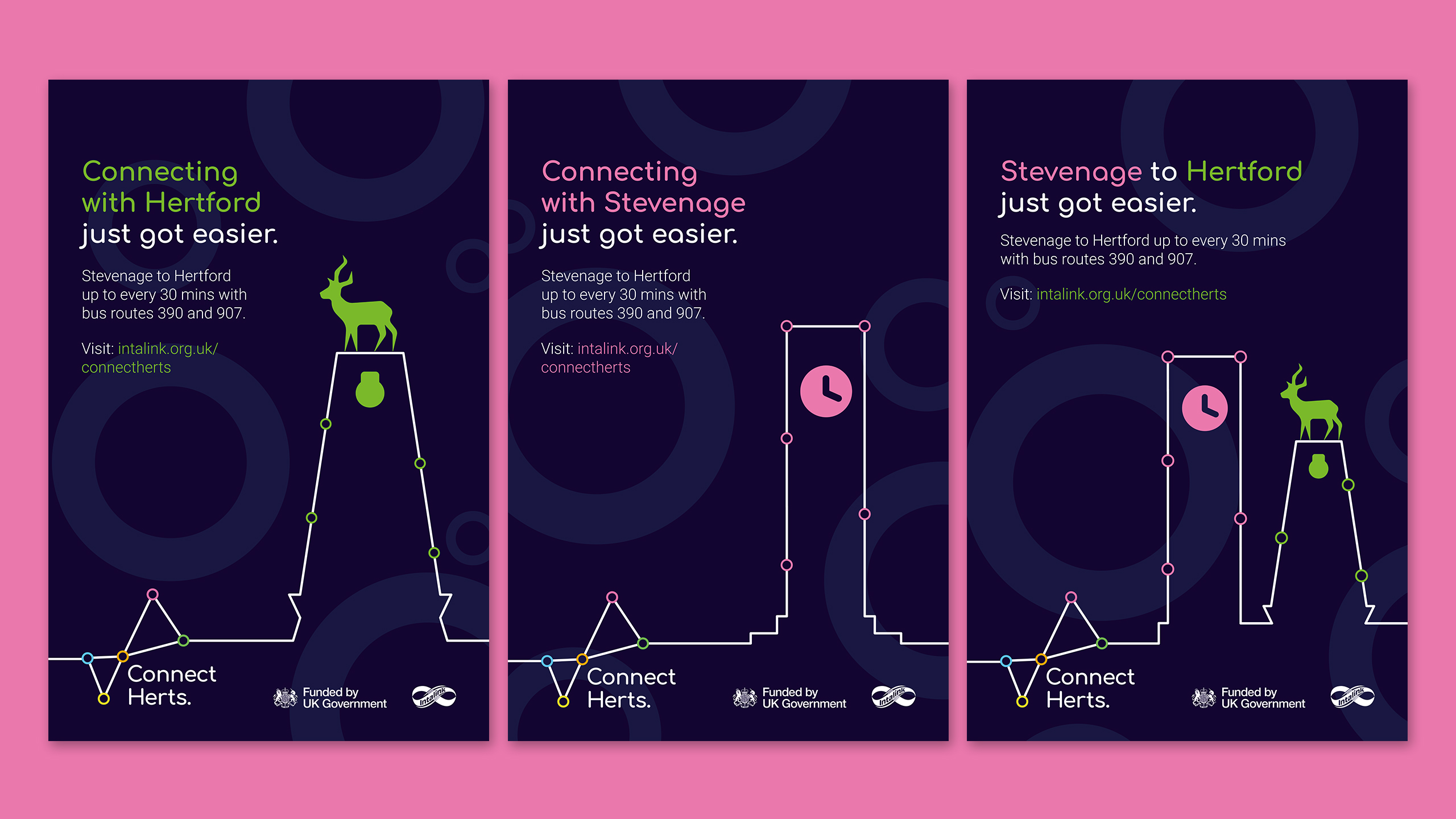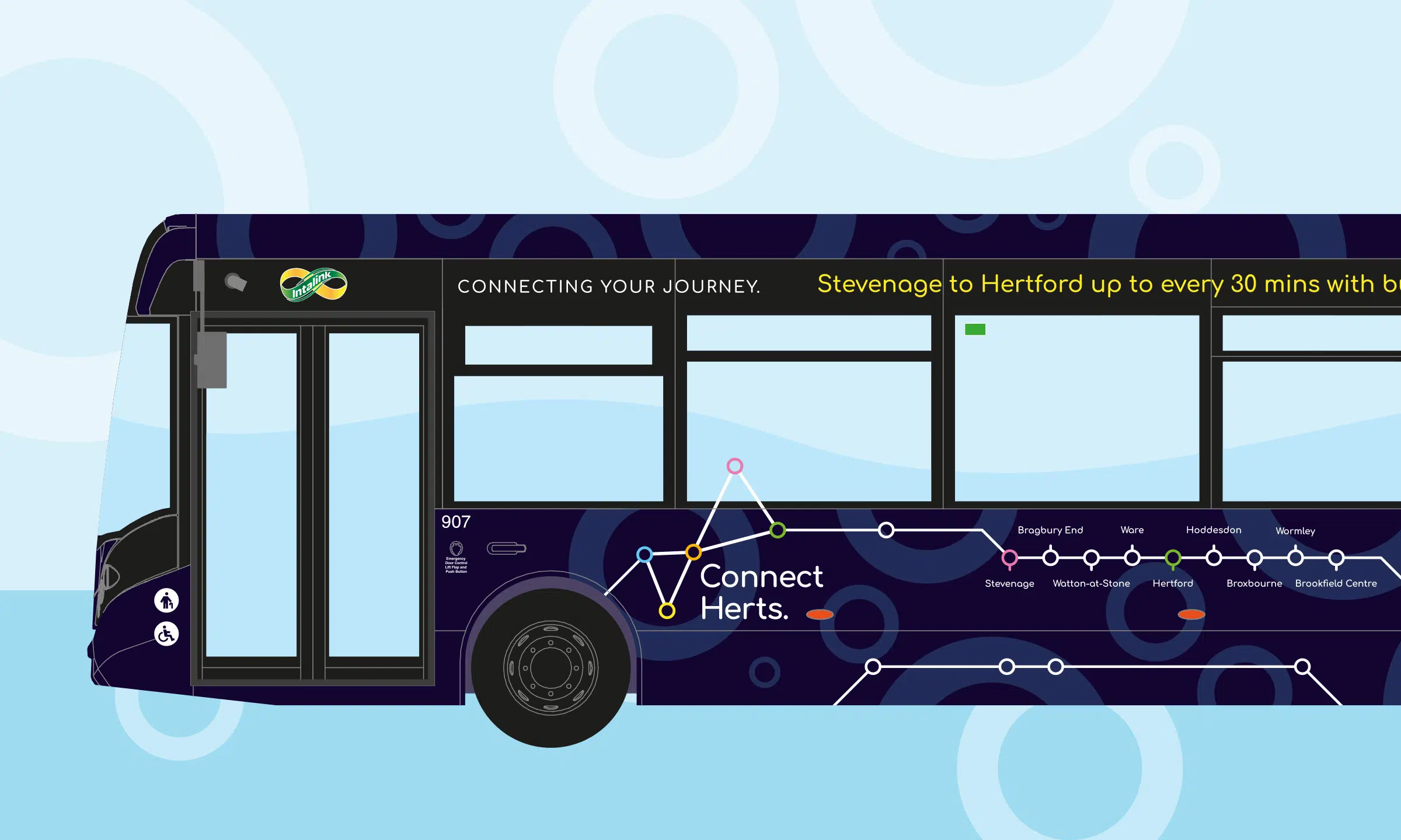We introduced the strapline “Connecting your journey” to contextualise the messaging and to convey to the people of Hertfordshire that this new bus scheme joins up the county with efficient and reliable travel.