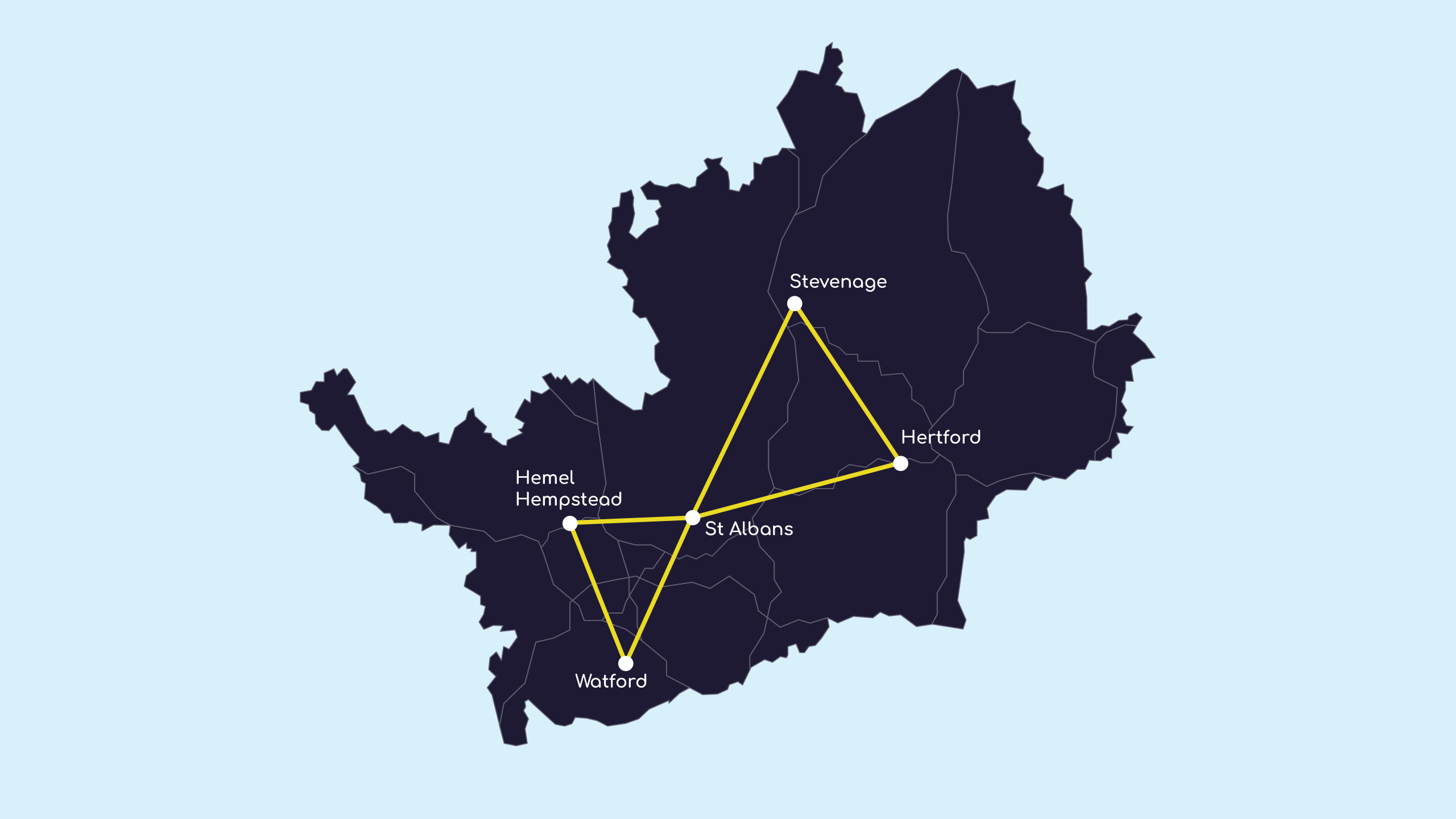 Hertfordshire County Council (HCC) approached us to support their vision for a series of brand new bus routes, consisting of integrated corridors to connect Hertfordshire’s primary towns. HCC were granted £29.7 million by the Department for Transport to drive passengers back to public transport as part of the government’s ‘Bus Back Better’ strategy. The new infrastructure is part of a three-year plan to improve the efficiency, accessibility and reliability of Hertfordshire’s bus networks.