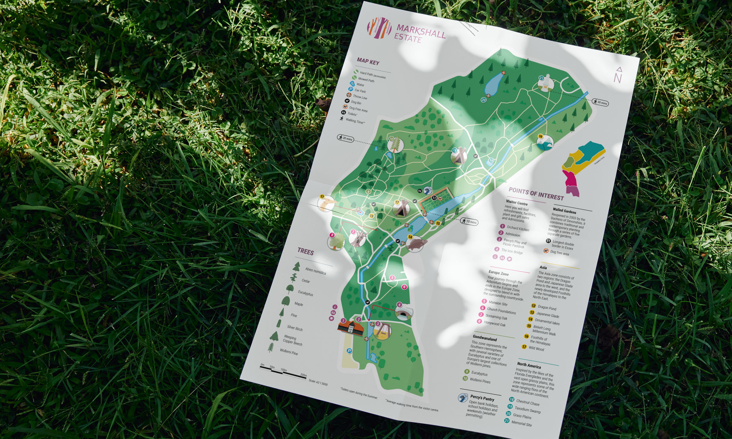 We designed a brand new map to help the public explore and discover the unique landscape of Markshall Estate.