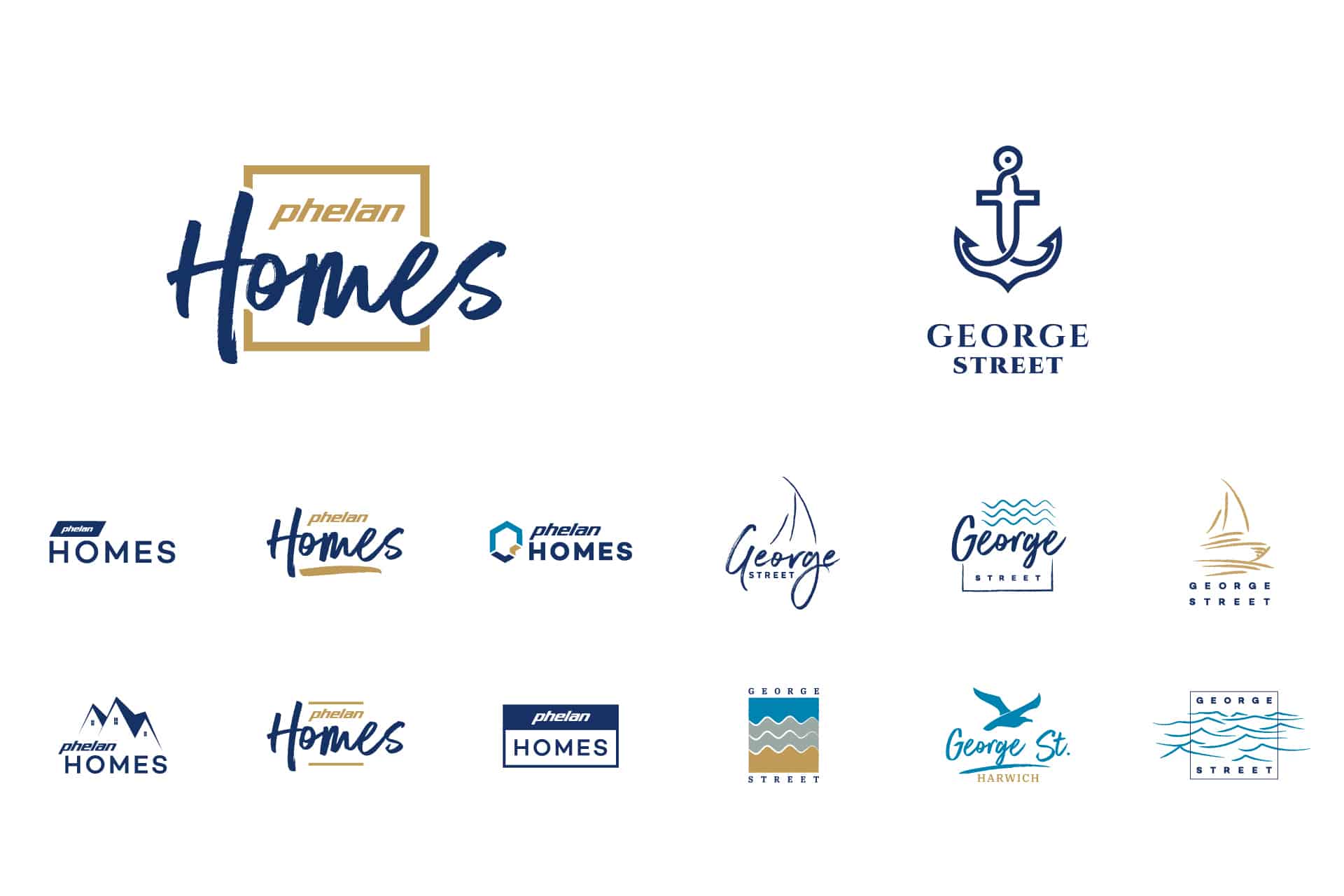 We created the George Street logo in tandem with the Phelan Homes logo, followed by a property brochure showcasing the George Street homes, where we created illustrated floor plans from the original diagrams.