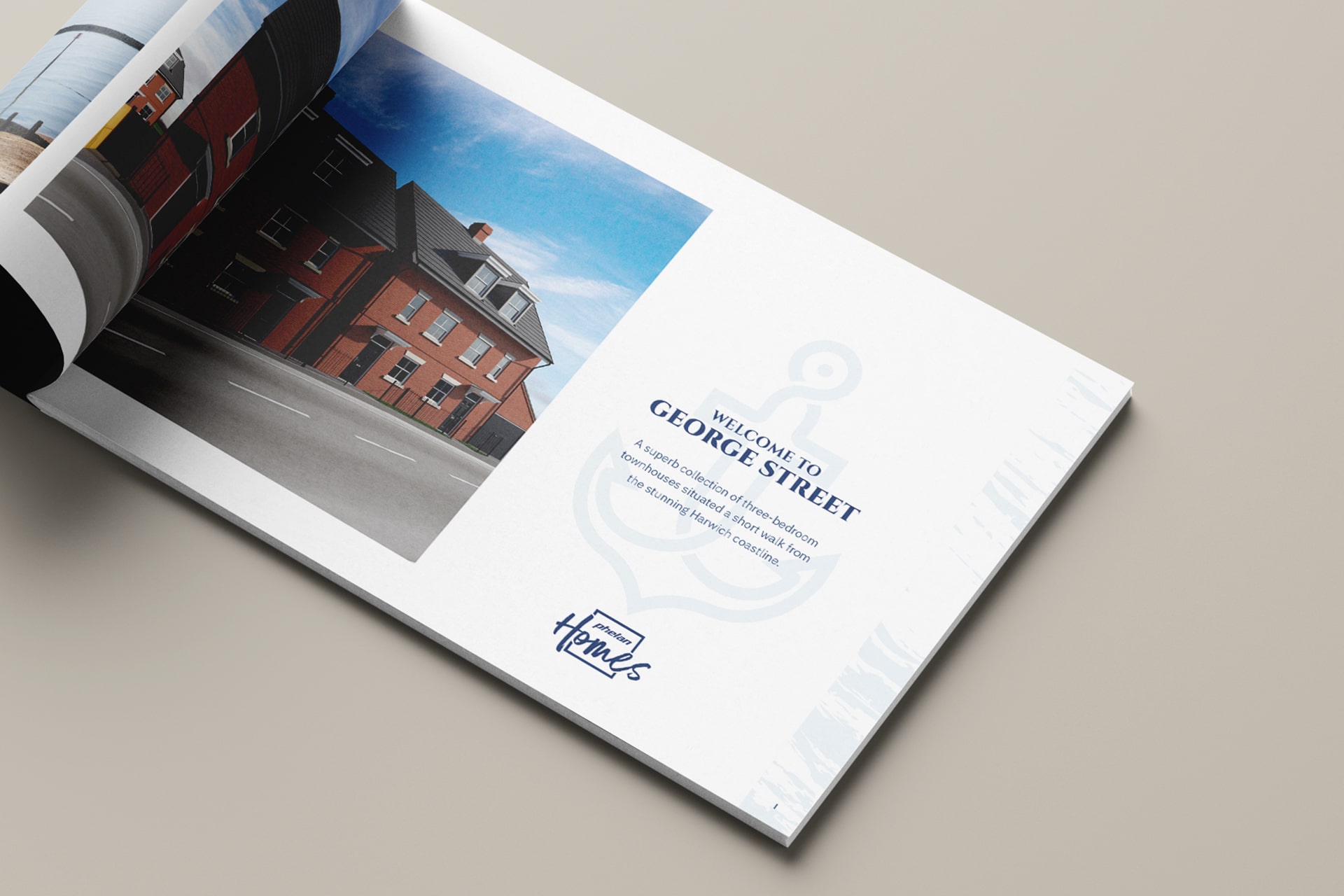 Phelan Homes was set up as an independent company venturing into property development., We created the logo based on the Phelan branding, but with more attention to the end-user, using typography to convey a relaxed yet aspirational look. Their first acquisition into property development was for George Street. A collection of three-bedroom townhouses, situated close to the Harwich coastline.