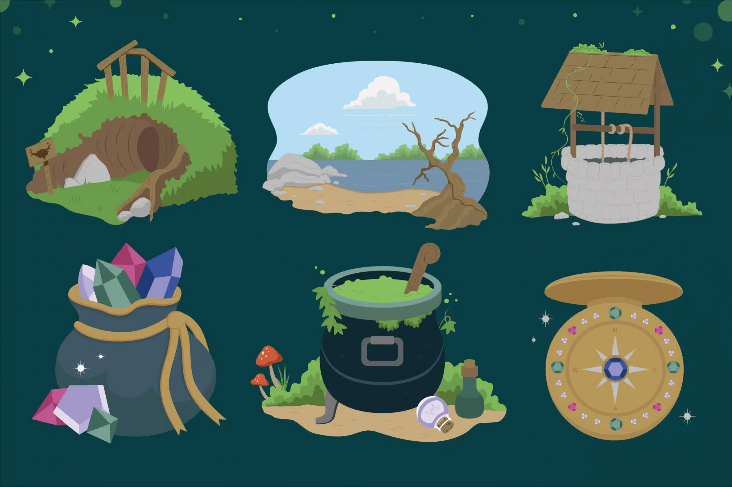 In addition to the forest inhabitants, we created illustrations for each of the core activities at Wyvernwood. Our job was to bridge the gap between the fantastical world outlined in the book and the physical structures in place at the park.